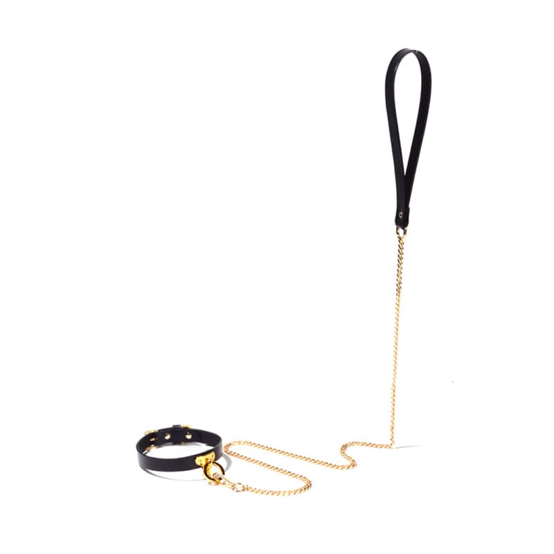 Collier en cuir de laisse de chaîne dorée