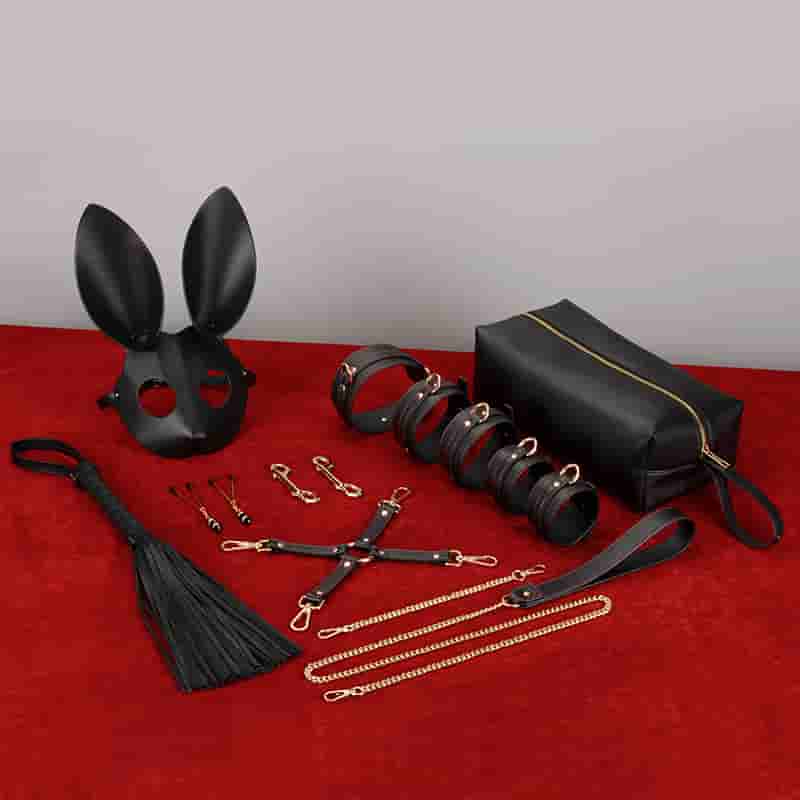• Menottes et menottes aux chevilles : ces contraintes sont la pièce maîtresse du jeu, offrant une retenue et ajoutant de l'excitation à l'expérience.